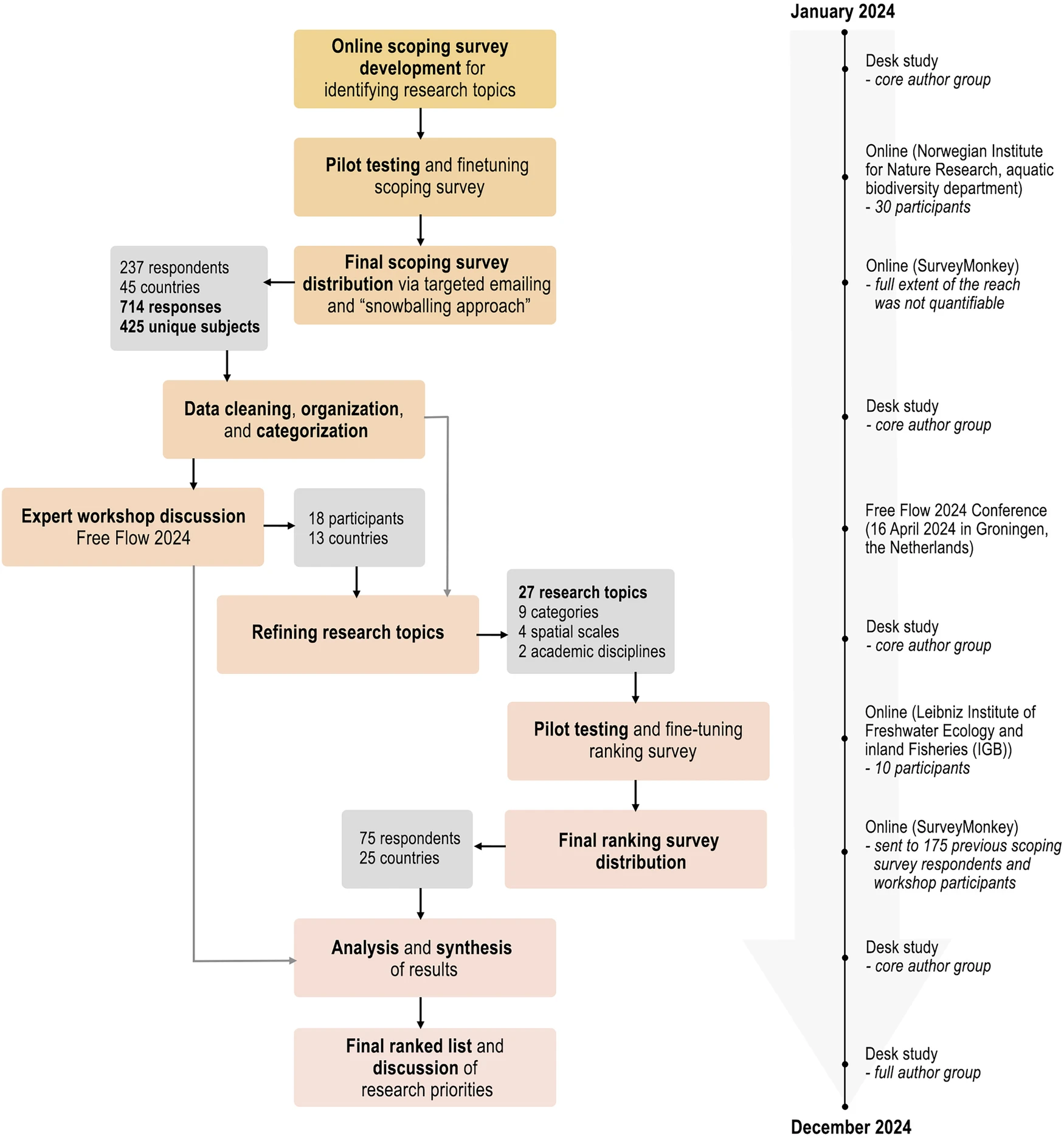 The paper investigates research priorities and strategies for restoring free-flowing rivers across Europe, supporting the European Union Nature Restoration Regulation target of restoring at least 25,000 km of rivers by 2030. It synthesizes expert knowledge from across 45 countries to identify 27 key restoration priorities and shows that these priorities differ depending on ecological, social, economic, and governance contexts. The study emphasizes that effective river restoration must be adapted to local and regional political, institutional, and ecological conditions, and proposes a structured framework linking barrier removal, connectivity restoration, governance mechanisms, and policy instruments to context-specific needs.